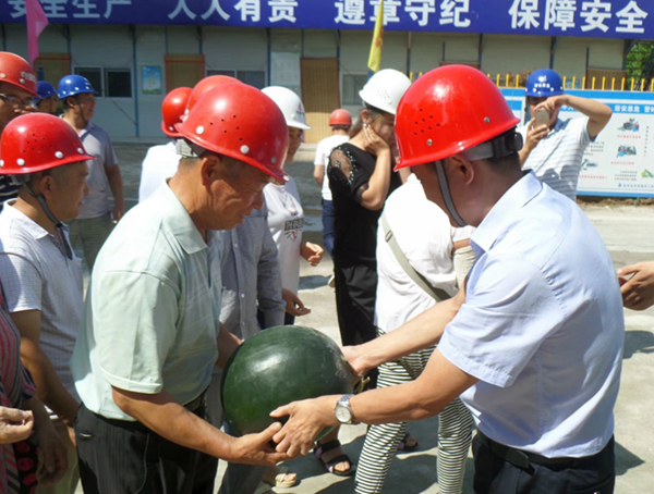 2017年7月13日上午,銅川市住建局副局長郭小放、銅川市新區(qū)管委會副主任張鐵成等相關人員來到陜西省華源建筑工程有限責任公司所屬海林御苑項目部,一同慰問在烈日下辛勤勞作的項目部全體員工,并親自為每位員工發(fā)放慰問品。隨后,在陜西省華源建筑工程有限責任公司總經理郝曉兵、海林御苑項目經理馮中樓等人員的陪同下,對海林御苑施工現場進行了高溫作業(yè)環(huán)境檢查,要求一定要抓好夏季安全生產工作,杜絕一切安全隱患的發(fā)生,根據高溫季節(jié)特點,合理安排工人作息時間,落實防暑降溫措施,盡量改善現場作業(yè)人員的工作和生活條件,一定要把安全放在首位。(楊楠)