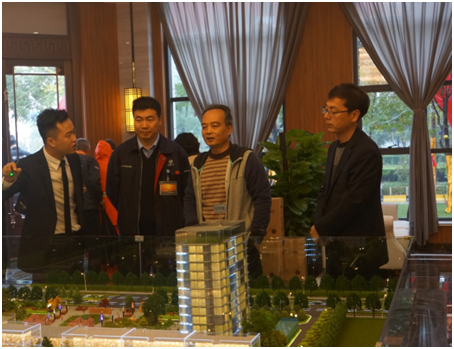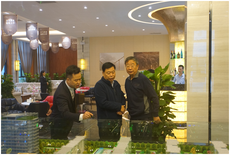 中國(guó)飛行試驗(yàn)研究院黨委書(shū)記宋躍進(jìn)(右一)和華原控股有限公司總裁魏進(jìn)民(右二)聽(tīng)取項(xiàng)目介紹